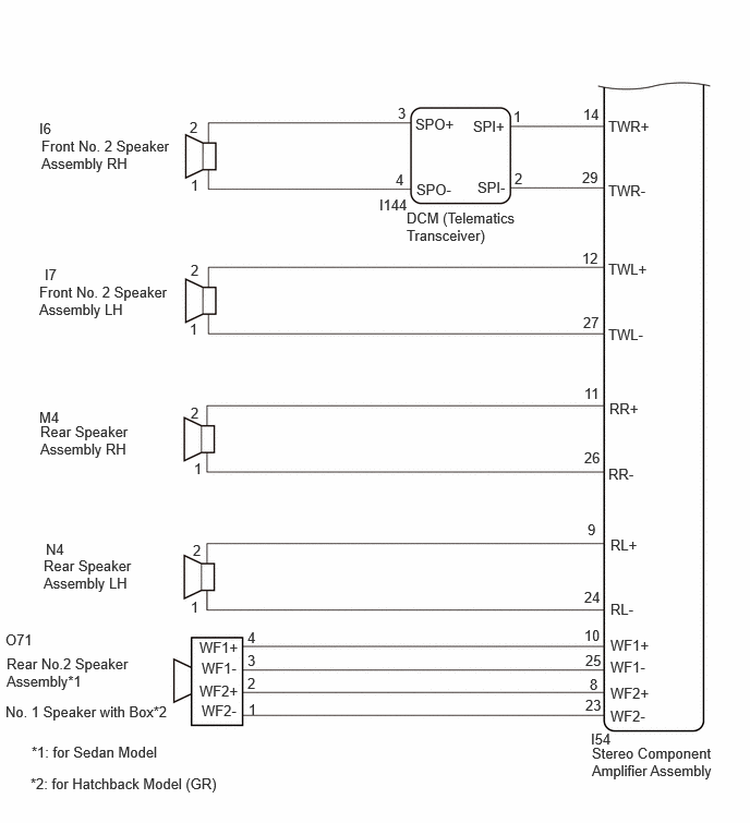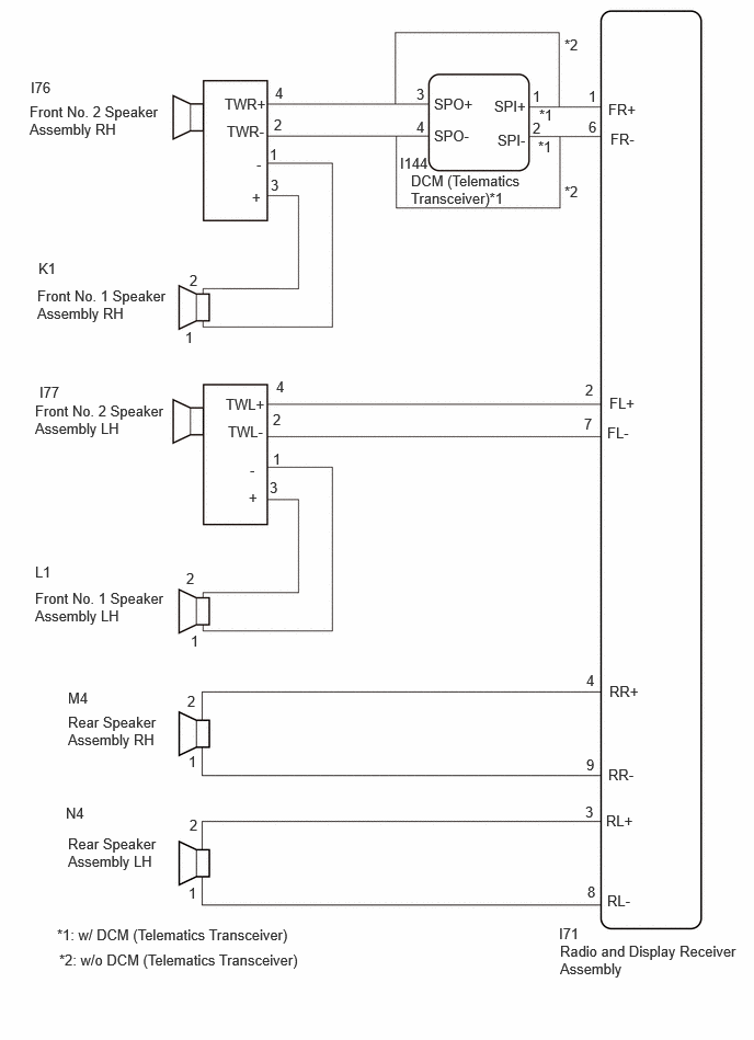 CHECK HARNESS AND CONNECTOR (DCM (TELEMATICS TRANSCEIVER) - FRONT NO. 2 SPEAKER ASSEMBLY)