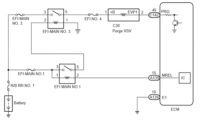 CHECK HARNESS AND CONNECTOR (EFI-MAIN NO. 3 RELAY - PURGE VSV)