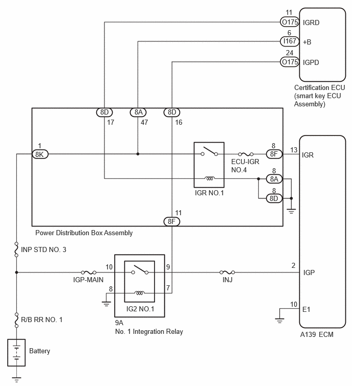 The ECM stores a DTC when there is no battery voltage to the IGR terminal even though there is battery voltage to the IGP terminal.