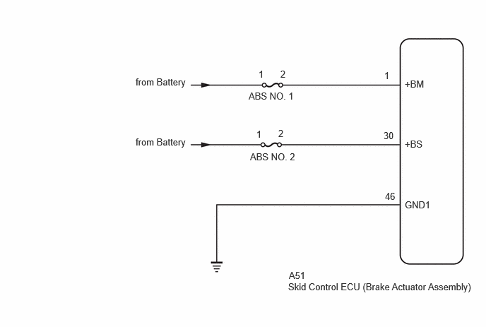 2 (ABS NO. 2 fuse holder) and A51-30 (+BS) - Body ground