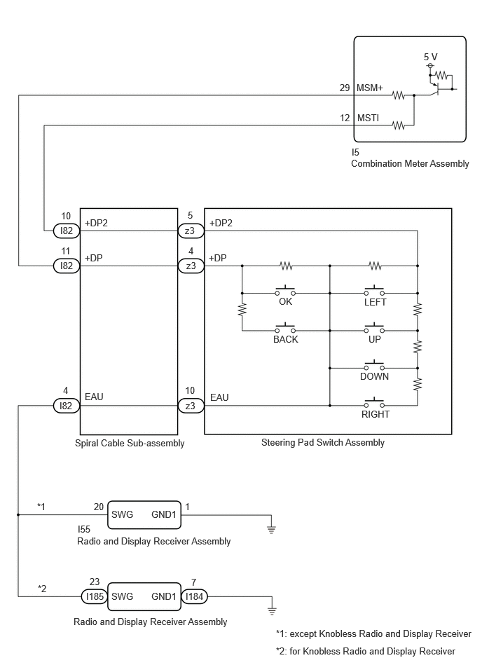 CHECK HARNESS AND CONNECTOR (RADIO AND DISPLAY RECEIVER ASSEMBLY - SPIRAL CABLE SUB-ASSEMBLY AND BODY GROUND)
