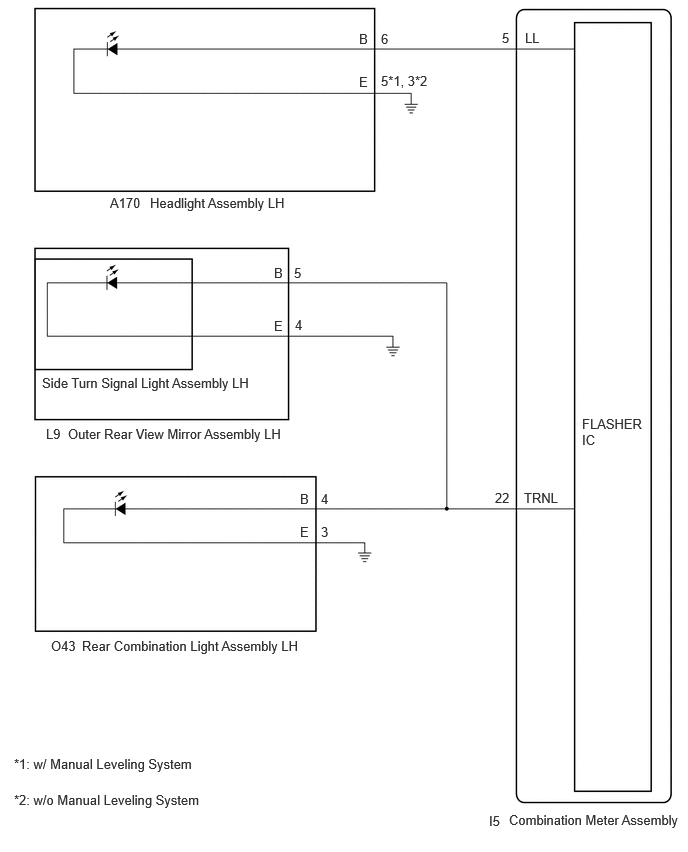 O104-3 (B)*1, O43-4 (B)*2, L9-5 (B) or I5-22 (TRNL) - Body ground