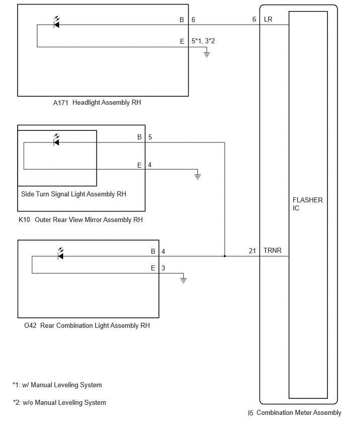 O103-3 (B)*1, O42-4 (B)*2, K10-5 (B) or I5-21 (TRNR) - Body ground
