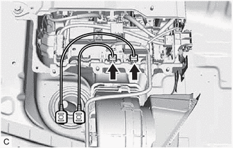(5) Connect the 2 HV battery junction block assembly connectors.